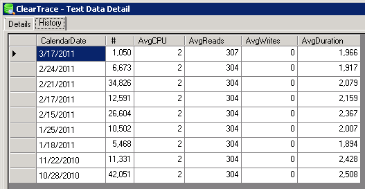 The latest release of ClearTrace (Build 38) now shows the execution history of a particular statement.